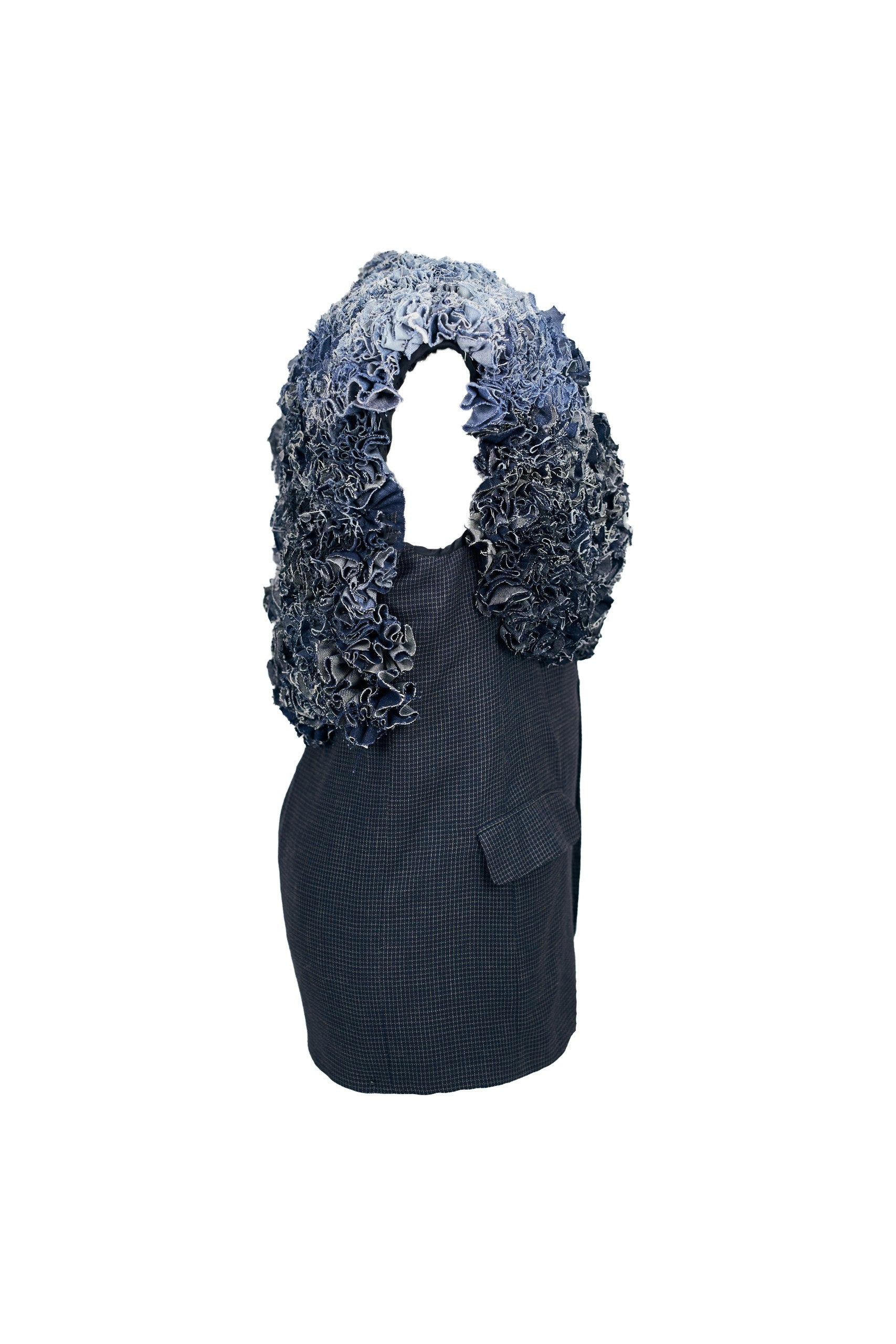 Design Features: The No. 00117 Vest incorporates minimal alterations to the original jacket design, with the sleeves removed and the armholes finished with silk from the lining fabric. This unique piece is adorned with over 340 assembled flounces, meticulously arranged to create a stunning texture with gradient effect.