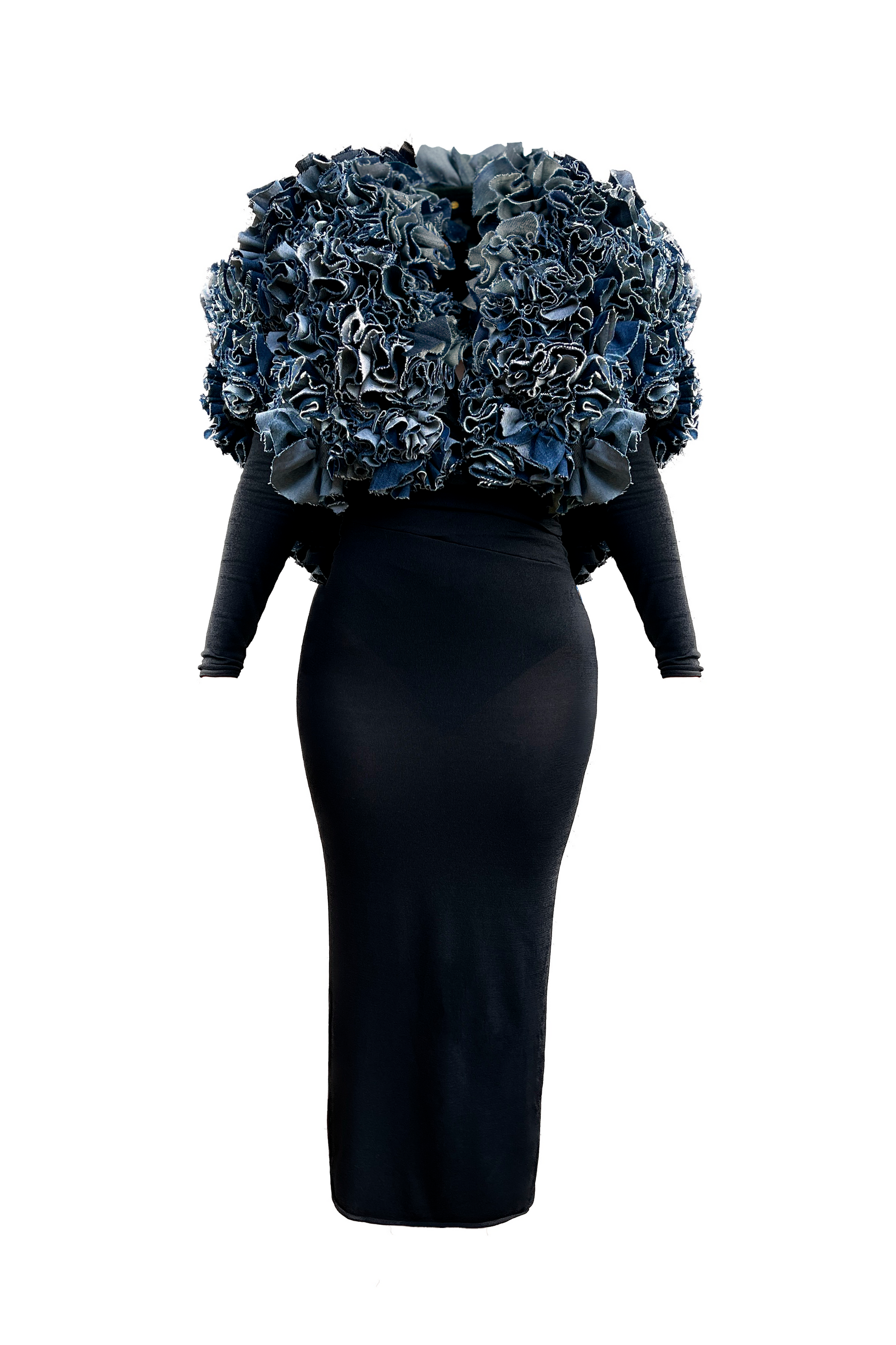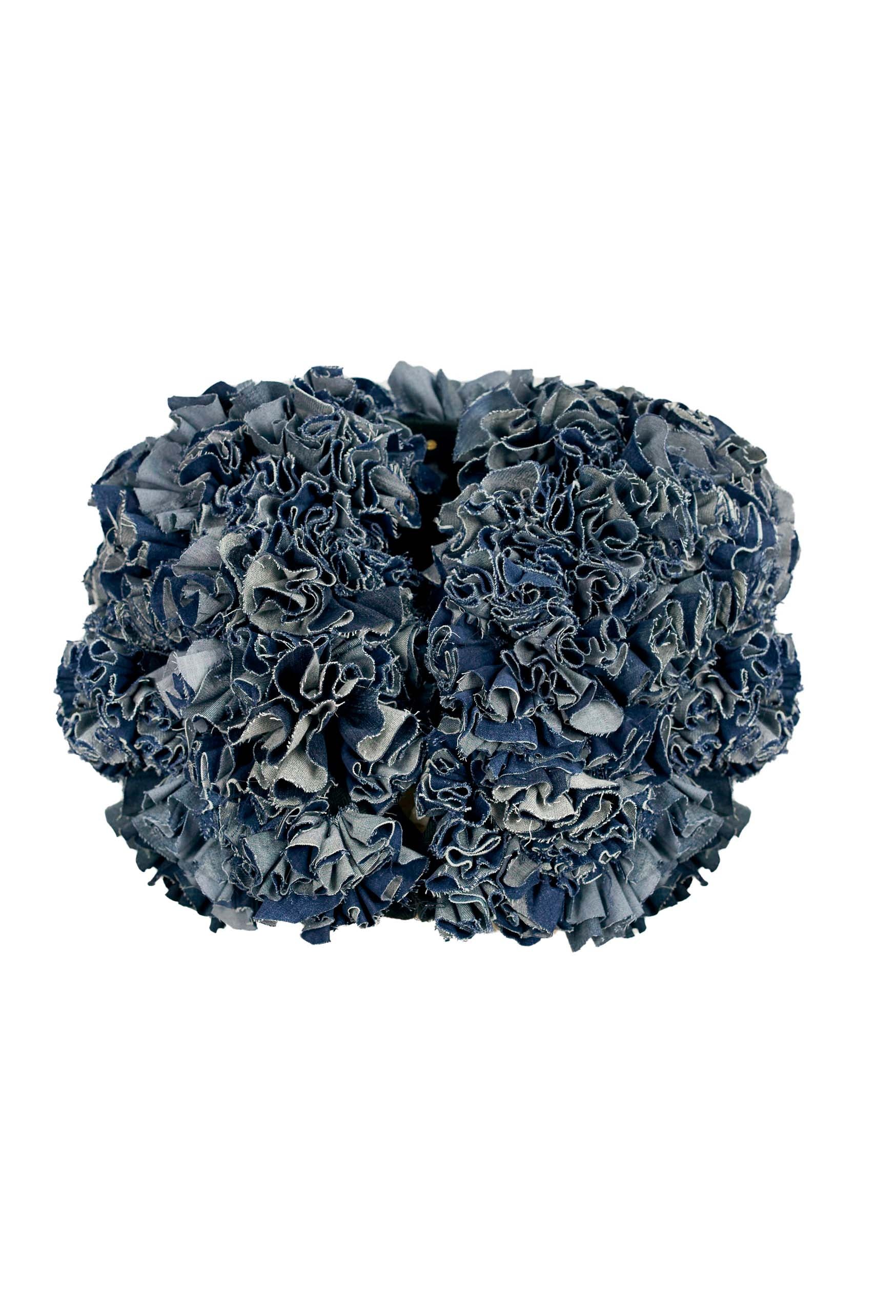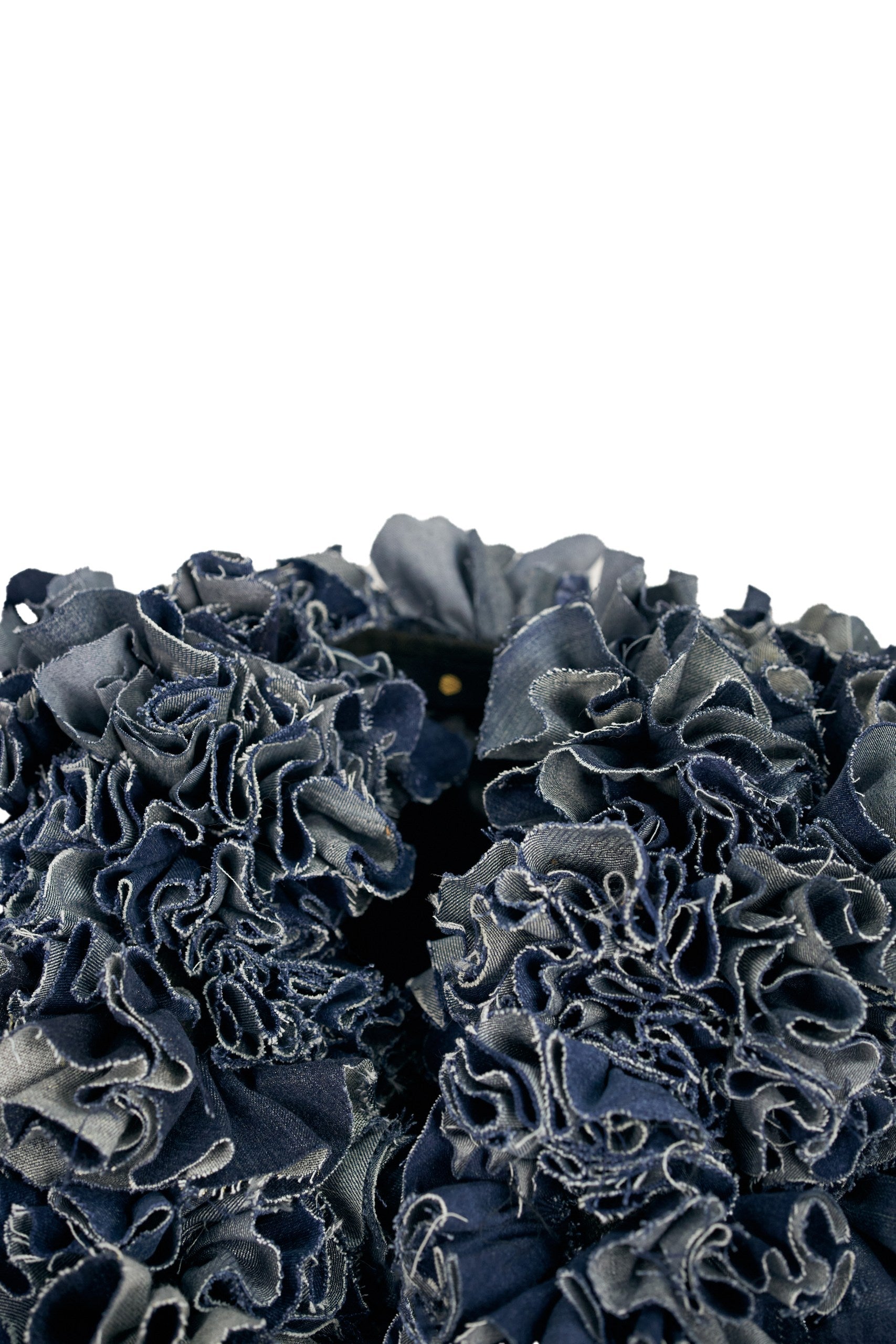 Design Features: The No. 00118 Short Vest is adorned with denim flounces, arranged in a chaotic yet artistic manner, adding a distinctive texture and dynamic look to the piece.