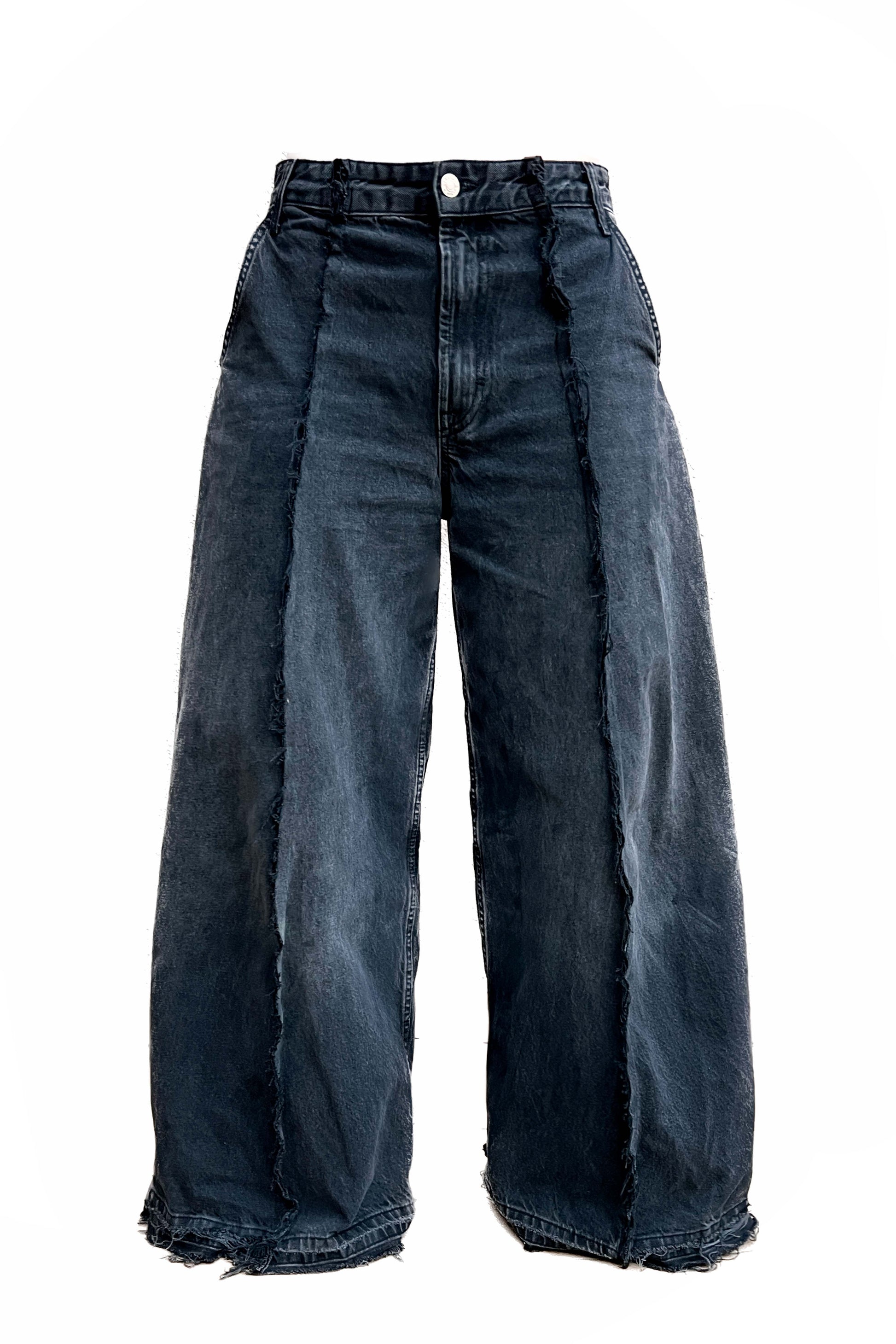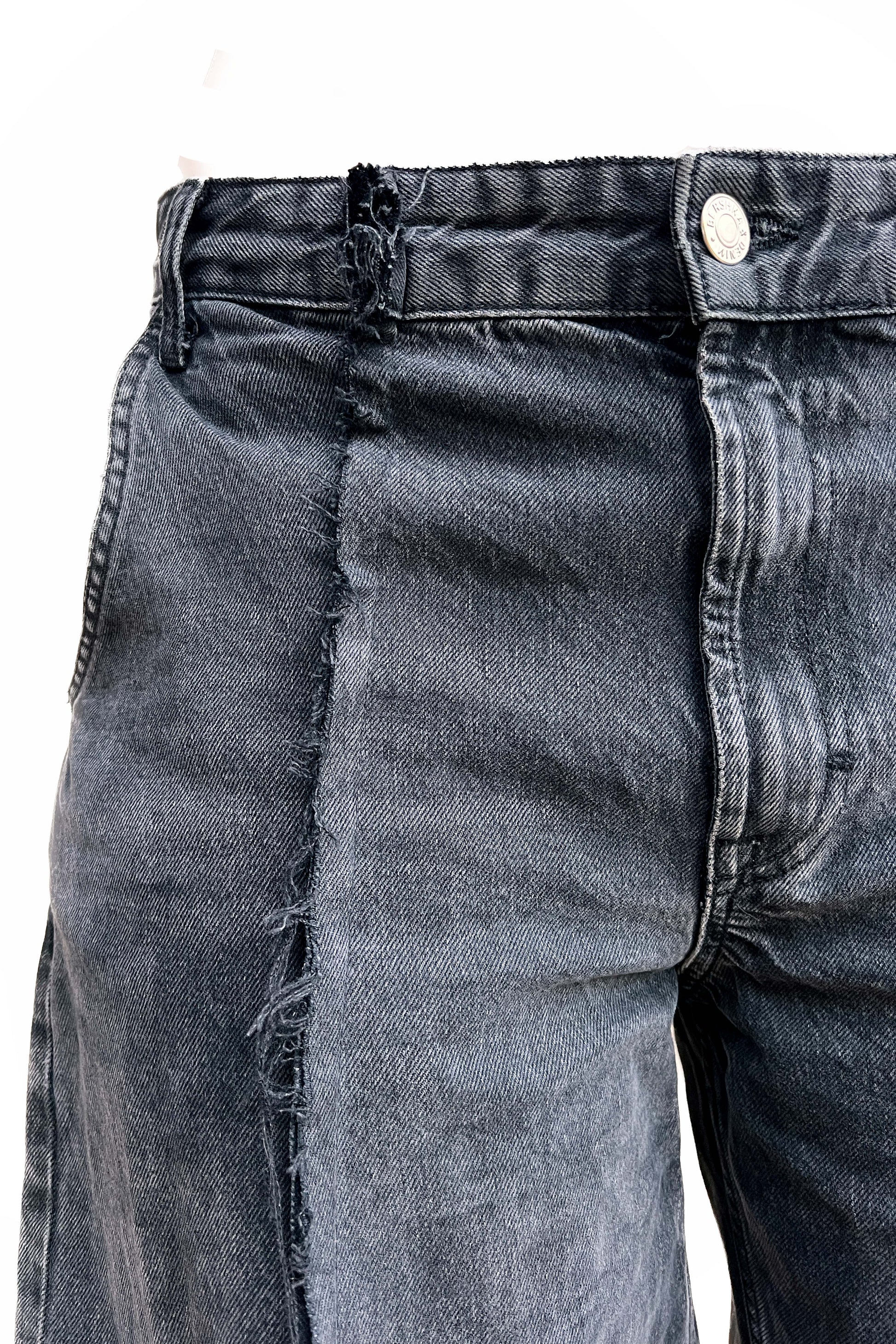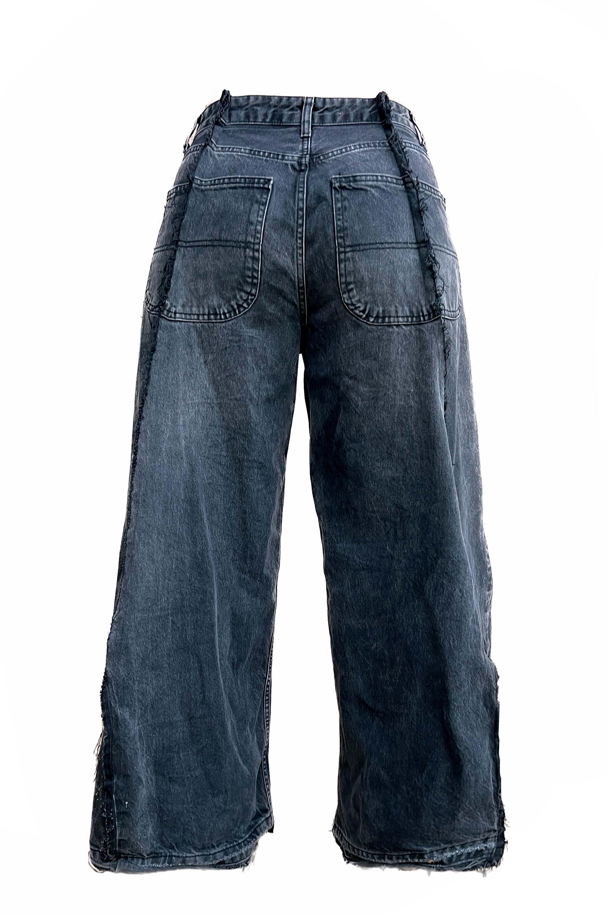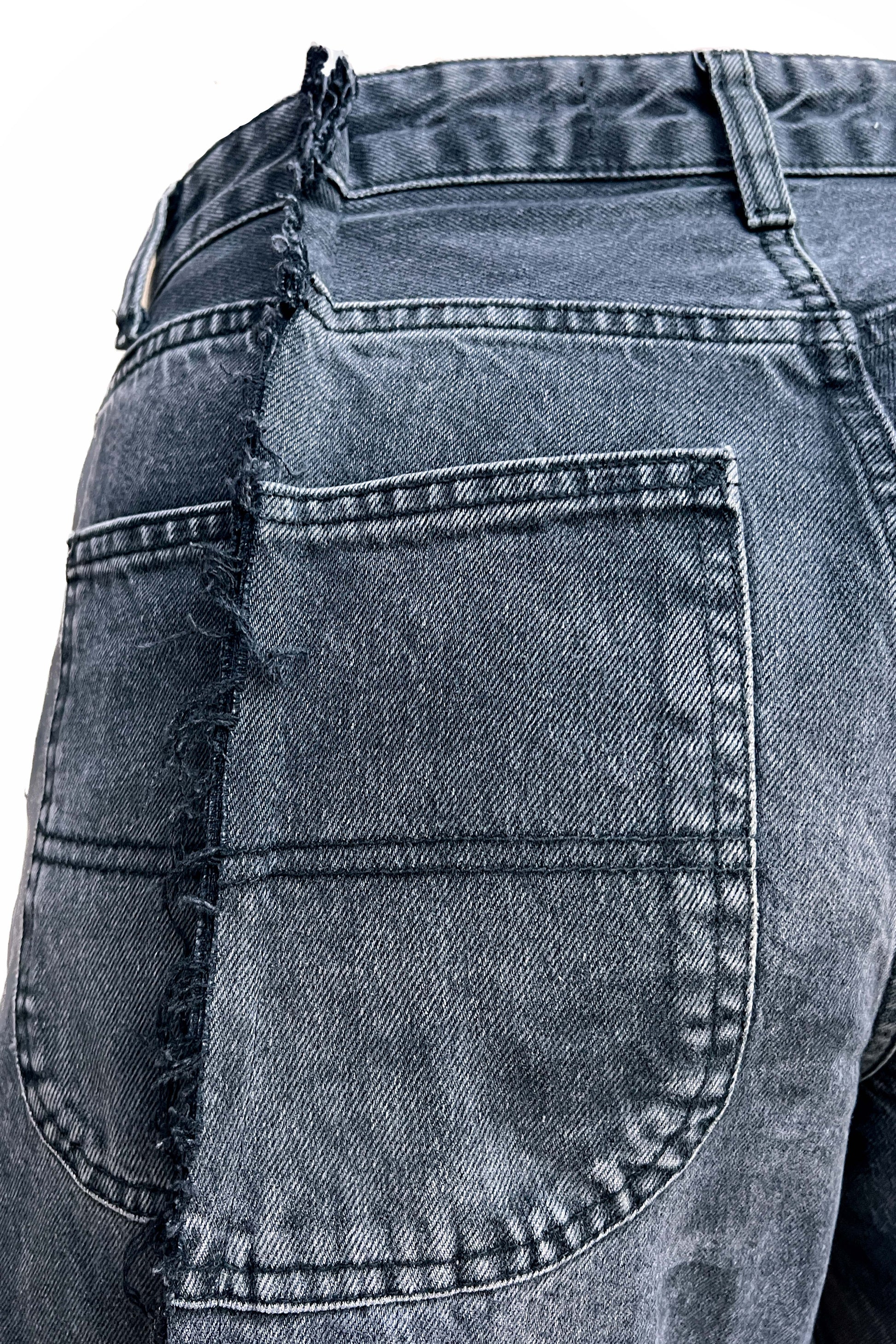 Design Features: The No. 00122 Jeans are crafted from carefully selected upcycled denim, reassembled to create a one-of-a-kind patchwork design. Each panel is strategically placed, ensuring a dynamic blend of washes, textures, and distressed details. The seams and raw edges add an edgy, deconstructed aesthetic, embodying the spirit of sustainability and modern urban fashion.